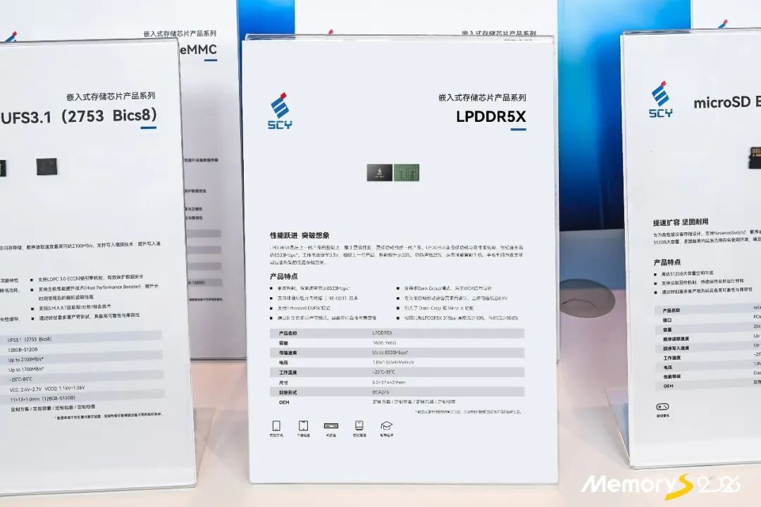 LPDDR5X(245ball):作为本次参展的重磅产品,LPDDR5X(245ball)凭借传输速率快、可靠性高、信号完整性强、容量大、尺寸小、功耗低六大核心优势,为AI时代智能终端性能升级提供强劲存储支撑。