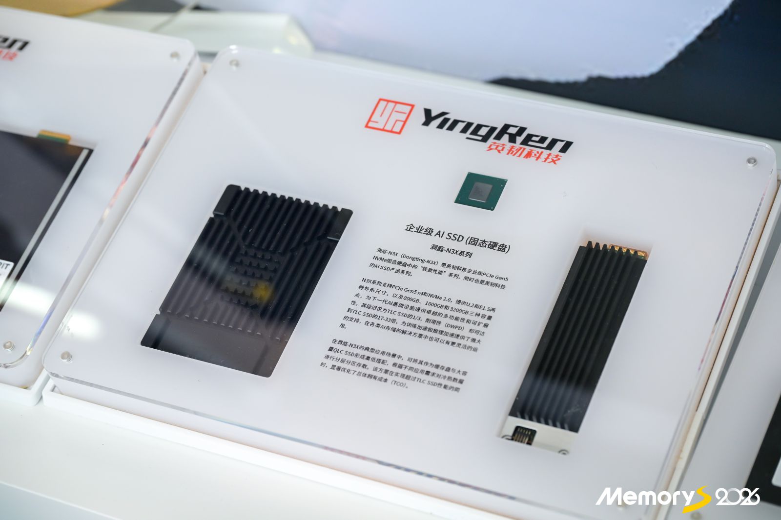英韧科技股份有限公司携旗下多款存储主控及SSD(固态硬盘)产品亮相MemoryS 2026,重点展示了面向AI场景的AI SSD洞庭-N3X系列以及PCIe Gen5 QLC SSD洞庭-N3Q系列。
